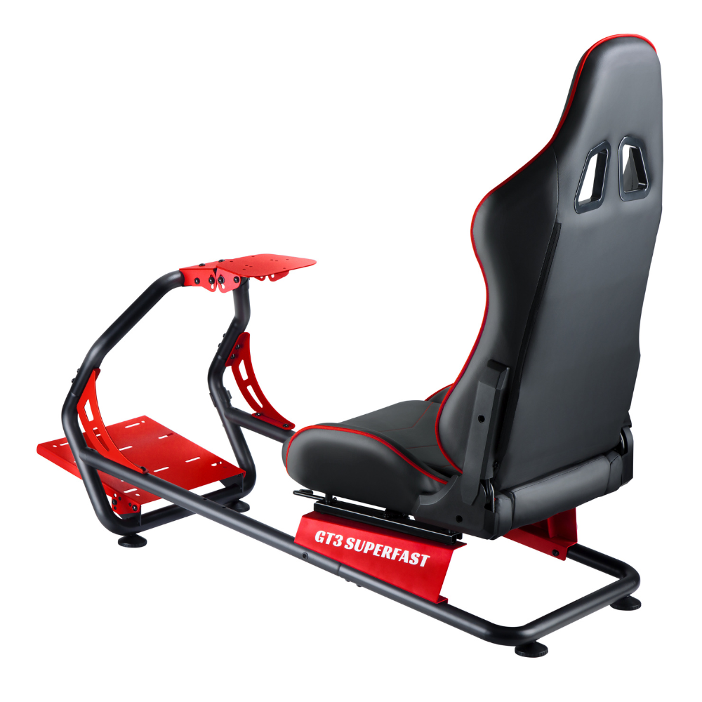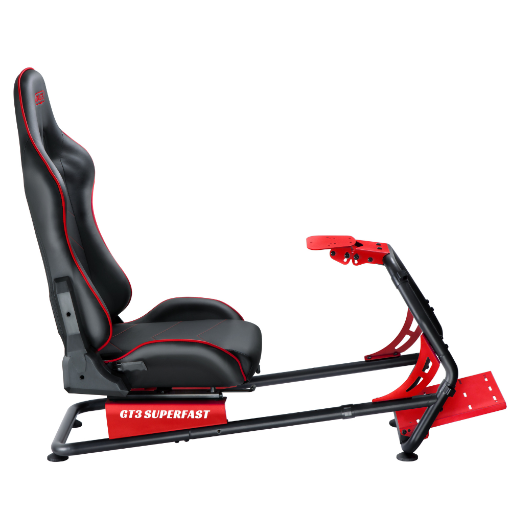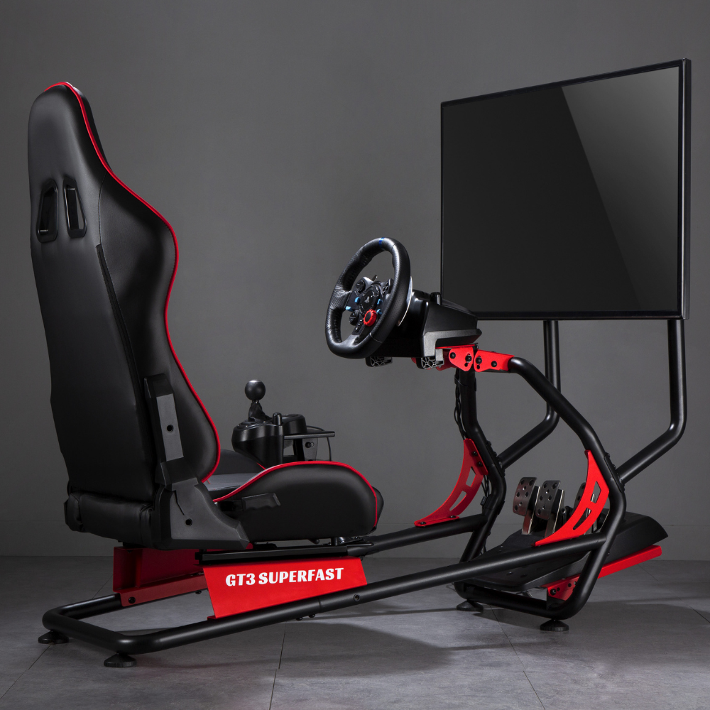 Le GT3 Superfast est un simulateur de conduite Type GT/Rally conçu pour une première approche du SimRacing. Constitué d’un châssis tubulaire de 35mm de diamètre rigide et design, il peut recevoir un support écran et un support boite de vitesse, en option.